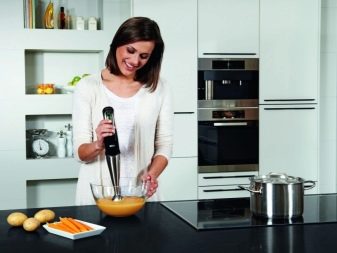 - Потопяем Моделът (настолен) на това устройство е удължено устройство, състоящо се от двигател, държач и нож. Както вече става ясно от името му, по време на употреба той не само ще трябва да бъде потопен в купа с храна, но и да го държи в ръце през цялото време. В допълнение, много модели от този тип се продават без специален контейнер, което прави възможно използването им във всякакви съдове за готвене..