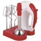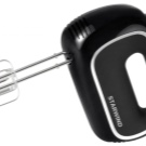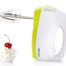 Ефективен ръчен миксер с марка Максуел, Витек, Panasonic, Philips е най -популярният. Той „печели“ по цена, наличност и богат асортимент от продукти. Също така, както и стационарни, тук често се среща пълен набор от дюзи. Акцентът е поставен върху ергономичната дръжка, така че да не се уморявате да държите устройството в ръцете си няколко минути подред.