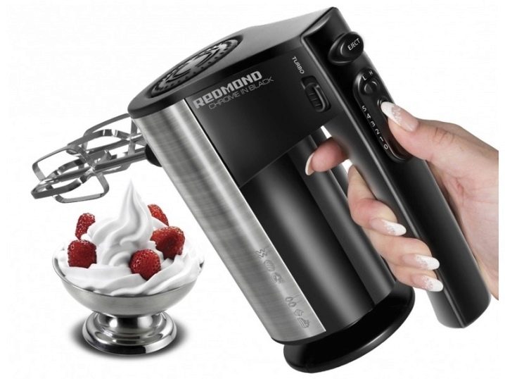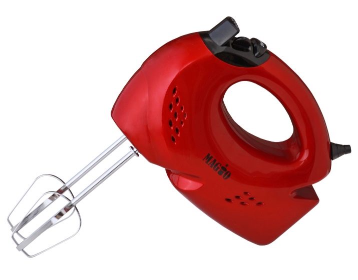Устройството има специални бутони за включване и контрол на скоростта, понякога със сензорен екран за по -удобна работа. В допълнение към бъркалките, куките за тесто могат да бъдат намерени в моделите от премиум клас. Дори и да ви хрумне да правите кексчета, мъфини, сладкиши или торти за рожден ден за други празници, не бива да трескаво търсите кухненски робот или блендер. Скромният миксер ще се справи перфектно с тази задача..