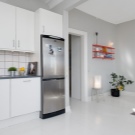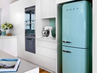 - поставете хладилника в края на дългата страна в ъгловата кухня. Ако поставите оборудването близо до прозореца, инсталирайте вратата по такъв начин, че да ви е удобно да използвате оборудването;