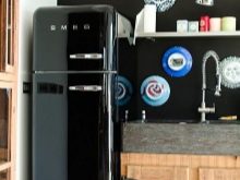 - за хладилно оборудване в еко-стил, можете да потърсите място близо до прозореца. Оригинално изглежда стъклената вложка на вратата, в която можете да наблюдавате отражението на природата;