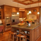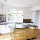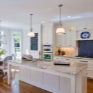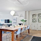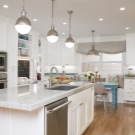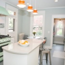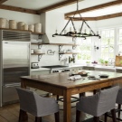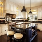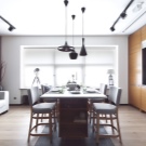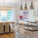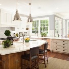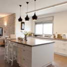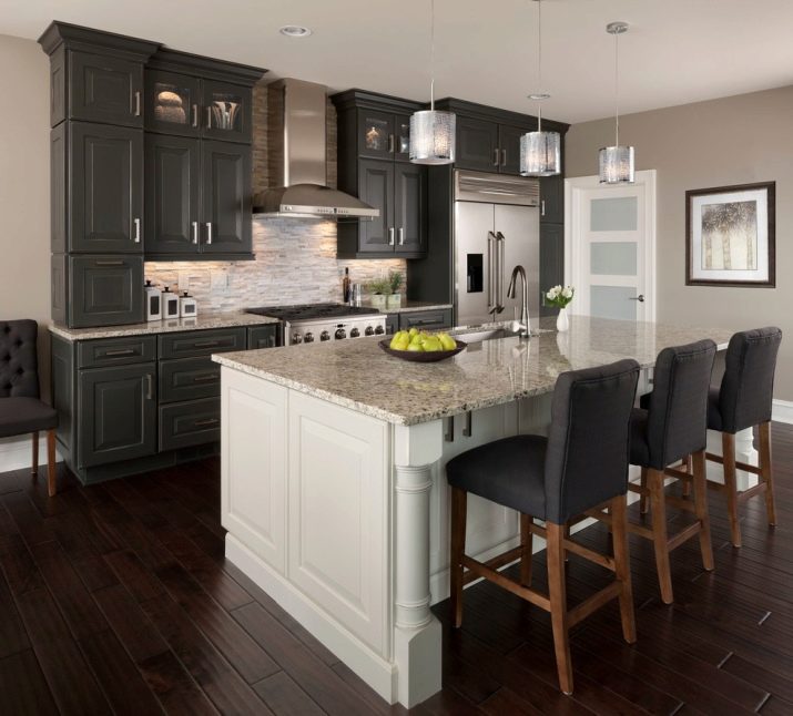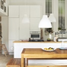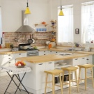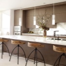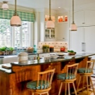 Ако искате ясно да подчертаете функционалната зона в кухнята, тройните висящи модели биха били добър вариант за това. Най-често тези системи се монтират над така наречените „острови“. Такива маси се използват както за работа, така и за хранене..