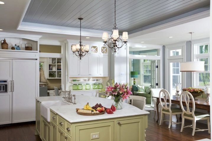Често таванните версии на лампи се използват за оборудване на кухнята. По принцип такива модели се използват в просторни стаи. Това са традиционни продукти, които съвременните производители непрекъснато усъвършенстват и използват нови идеи, за да създадат интересен и стилен дизайн на осветителни елементи. Често такива модели се предлагат с дистанционно управление..