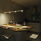 Най -популярни са LED осветителните тела. Такива опции не се използват като основно осветление, но перфектно допълват интериора. LED типовете играят ролята на допълнителни декоративни елементи. Те могат да бъдат единични (за поставяне на точки) или разположени по периметъра на кухнята.