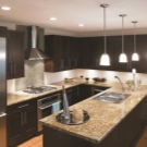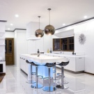 Ако погледнете многото примери за модерен интериорен дизайн, можете да видите, че в повечето случаи се използва многостепенно осветление. Общата система се използва рядко. Днес дизайнерите се опитват да изключат опции като огромни и габарити полилеи, особено в кухненския интериор, което не е много удобно и не изглежда подходящо в съвременния интериор..