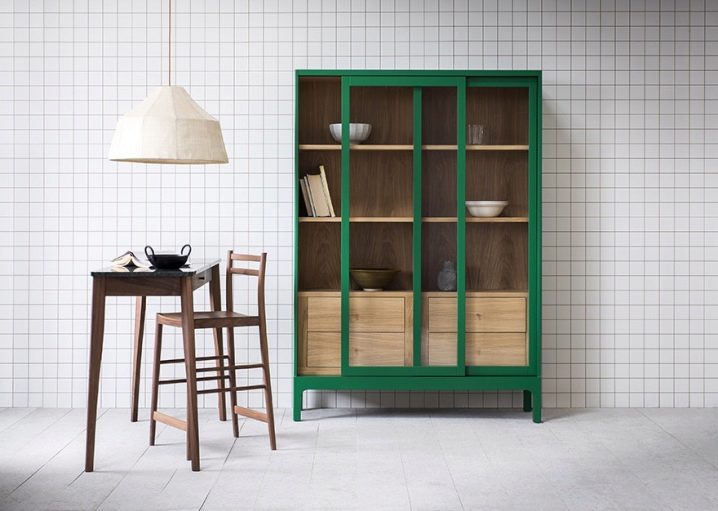 Плъзгащите се врати са най -доброто решение за малки кухни. Понякога е необходимо кухненските шкафове да бъдат постоянно отворени, но няма допълнително място, така че горните опции са неприемливи. В този случай инсталирането на врати върху водачи ще спаси ситуацията. Закрепването на такива фасади позволява вратите да се отварят от центъра към страните, така че те няма да попречат на членовете на домакинството да се разхождат свободно из кухнята.