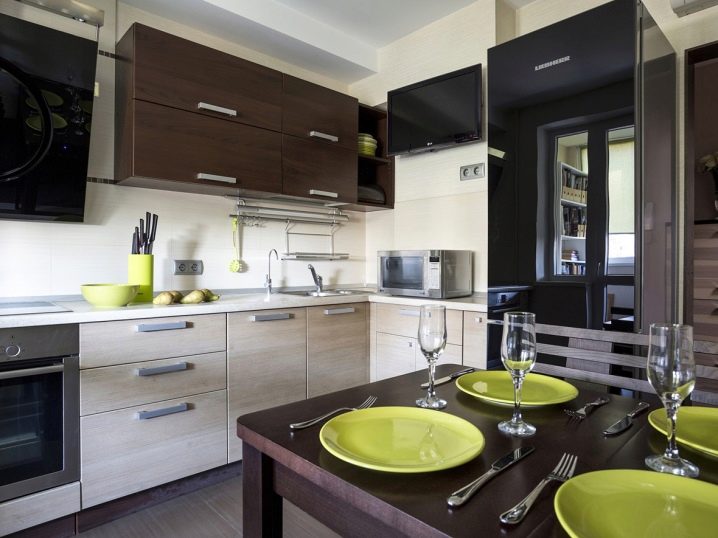 Радиалните врати са тенденция на модерността. Извитите и гладки линии сега са на мода, в резултат на което в ъгловите кухни често можете да видите точно извити или изпъкнали извити фасади. Такива дизайни изглеждат стилни и оригинални, а кухните, декорирани с тях, са много привлекателни. Вратите са удобни за използване, но имат и минус – висока цена.