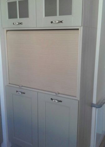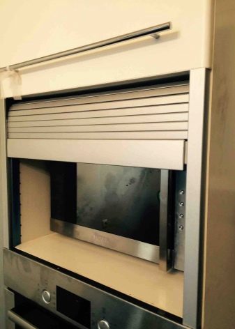 Тамбурните врати ви позволяват успешно да скриете малки домакински уреди. Принципът на отваряне на такива врати е вертикално плъзгане отдолу нагоре..