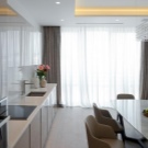 В същите стилове японските завеси ще бъдат актуални. Право парче полупрозрачни тъкани обикновено се прикрепя отгоре, без да се нарушава идеално равномерния състав на материала. Моделът се държи на подгъва от метални тежести. Регулирането на дължината на продукта е друг плюс в полза на японските завеси. Красивите “припокривания” от полупрозрачни парцали от плат ще позволят да играете със светлина и сенки, контрастни цветове и дори радикално да промените дизайна на кухнята.
