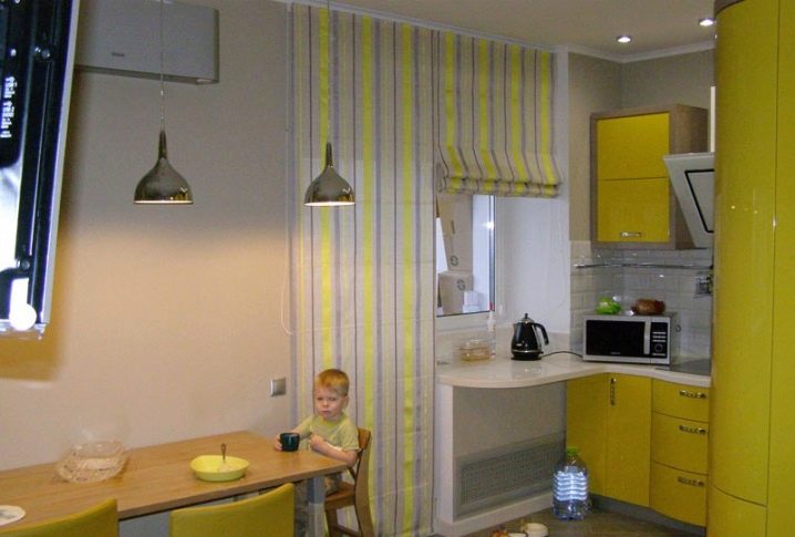 Продуктът няма да направи кухнята мрачна поради факта, че пропуска достатъчно количество слънчева светлина. С него стаята става по -уютна и по -стилна. Например римските щори са прикрепени не само към корниза, но и към рамката, стената. Не е нужно да ги премествате, защото платна могат да се издигнат във вертикална равнина. Изобщо няма да нарушите композицията, ако използвате къса завеса за прозореца и дълга завеса за балкона..