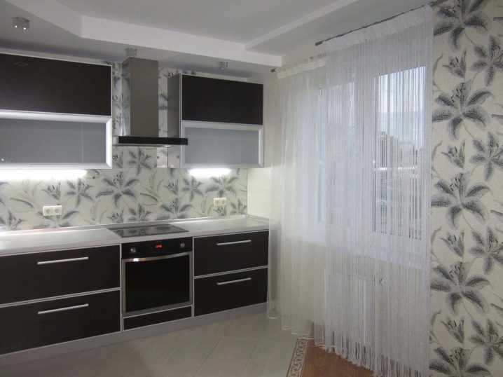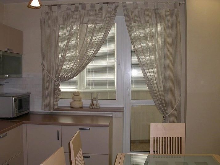 Специалните завеси се различават от традиционните по няколко начина. Първо, техният “стил” не пречи на преминаването към балкона, осигурява лесното му отваряне. Второ, тук няма да намерите обемни, широки ламбрекени, волани по подгъва. Основната задача на онези, които украсяват прозореца и балконния отвор едновременно, е хармонична комбинация от две нива, създаващи органична композиция. Не бива да разваля цялостния интериор на кухнята, но трябва да изглежда естетически от задната страна на прозрачната врата..