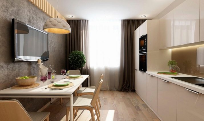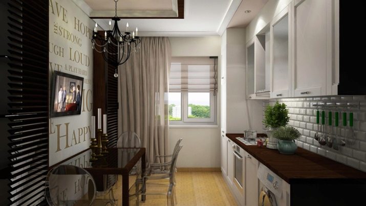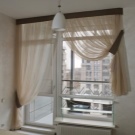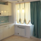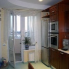 Балконът в кухнята е чудесно решение за отделяне на работното пространство от зоната за сядане. Неразделен атрибут на такава стая ще бъдат завеси, тюл или кухненски завеси, съобразени с тона. На пазара има огромен брой модели текстил за прозорци и балконски врати, които трябва да бъдат избрани въз основа на стила на интериора..