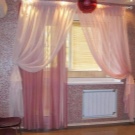 Много текстилни дизайни за проектирането на такъв блок са направени на различни нива. Този вид асиметрия се постига чрез жартиери. Най -интересното от всичко е, че този “стил” ще изглежда с витражно фолио. Тя създава много декоративни решения, атмосфера на комфорт и благополучие.