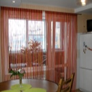 Комбинираните завеси са отлично решение за кухненския балкон. Разделете зоната на прозореца и вратата с римски шарки и “японски” панели. В този случай е важно да изберете една и съща материя и за двата вида, за да не нарушите равномерния състав. Внимавайте и за обикновени декоративни аксесоари: контрастни тръби, щампи, шарки, шнурове и т.н. Атмосферата в къщата веднага ще придобие ориенталски нотки с приятен дизайн.