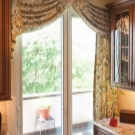 Можете също така да комбинирате такива модели с помощта на ламбрекен. По цялата си дължина той затваря отвора на балкона, маскира корниза. Необичайна рамка за завеси ще добави жар към дизайна на вашата кухня. Правилната дължина няма да попречи на свободното отваряне на вратата. Красивите завеси за кухнята с балконска врата често се изпълняват в провансалски, френски, антични, селски и др..
