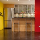 Жълто – оранжевият дизайн на кухнята ще бъде много полезен за много ярки личности. Стените могат да бъдат боядисани в жълто и допълнени с оранжево или прасковено обзавеждане, бяла маса и столове и сребърни уреди могат да се използват за създаване на акценти. Основното нещо е да не прекалявате с тези топли цветове, те трябва да се разреждат с други, светли нюанси..