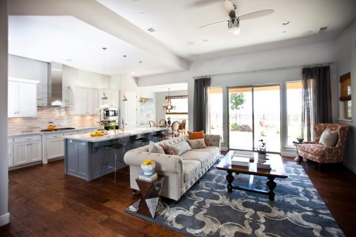 Зонирането на кухнята и хола се използва, за да се подчертаят отделни функционални зони в помещенията, без да се използват плътни стени и прегради. По този начин се постига по -голям визуален обем на помещенията, интериорът придобива оригиналност. Винаги е интересно да се развиват интересни дизайнерски идеи със зони и да се реализира проектът.