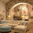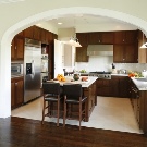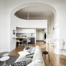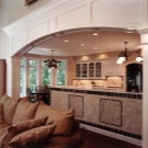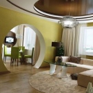 Вътрешната арка е често срещан пример за зониране на кухня и хол. В същото време той служи като ясна граница на функционални зони и дава свободен изглед, не затрупва пространството и създава единен образ на помещенията. Арката може да има различни форми, да бъде направена от различни материали.