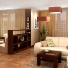 Вместо стационарни фалшиви стени, преносими елементи могат да се използват за отделяне на зони: плъзгащи се паравани, прегради, завеси, мебели. Предимствата на този метод са, че можете лесно да промените интериора и не е необходим сложен монтаж за ограничаване на зоните в хола..