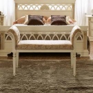 - Стилен вариант за всяка спалня. Ще можете оптимално да оборудвате мястото си за почивка, да го направите още по -уютен и удобен. Съвременните производители произвеждат модели в различни стилове, цветови вариации, прибягвайки до различни техники. Пейката ще се превърне в връхната точка на вашата стая.