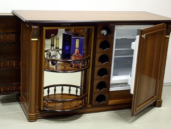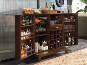 Възможно е да се откроят не само класическите опции, но и много интересни бар шкафове, които приятно изненадват с функционалността си. Много хора се опитват да разнообразят дизайна на такива мебели..