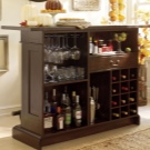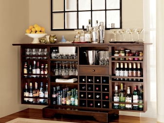 Класическото съхранение на спиртни напитки трябва да бъде разделено на няколко части, така че да можете да събирате уиски, вино и ликьори на едно място. В някои случаи обаче дизайнерите отиват още по -далеч и допълват дизайна си със стъклени рафтове, отделения за съхранение на салфетки, тирбушони и други дреболии. Това е много удобно, тъй като всичко, от което се нуждаете, винаги ще бъде на една ръка разстояние..