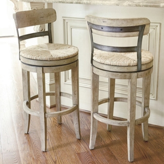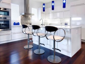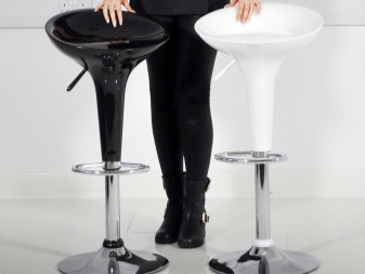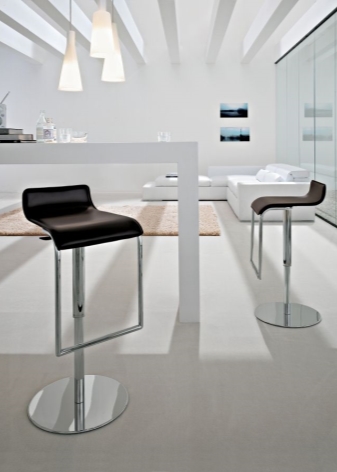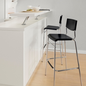 Например, ако под плота има домакински уреди или не трябва да има резки промени между нивата на кухненските мебели. В този случай моделите на столове ще бъдат по -удобни. не с фиксирана, но с регулируема височина: