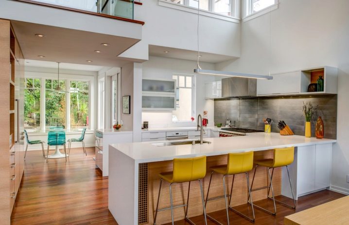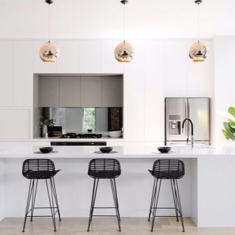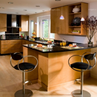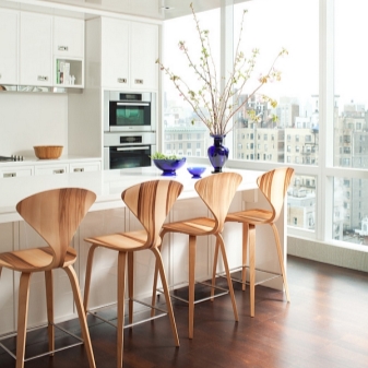 - Мултифункционалност. В някои случаи изобщо не е необходимо да се използват обикновени столове – те са напълно способни да бъдат заменени с регулируеми по височина бар столове. А въртящите се столове не трябва да се преместват;