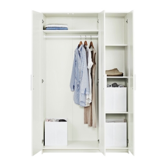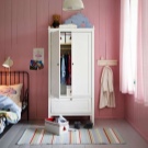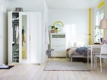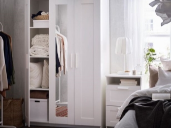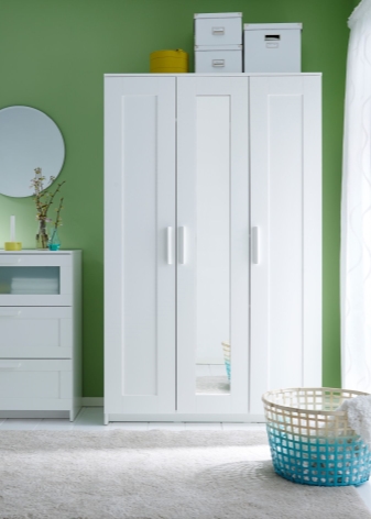 - За любителите на масивен гардероб ще подхожда бял гардероб Ikea с високи крака. Оборудван е с огледало и просторни рафтове за съхранение на дрехи..