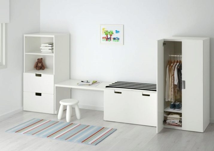 Белите детски гардероби се отличават със своето удобство, лаконичен дизайн и функционалност. Можете да закупите продукти специално за съхранение на дрехи и обувки или да изберете цял комплект за дете, който включва дизайни за съхранение на книги и училищни пособия. Не е необичайно да видите пластмасови скринове, специално изработени за деца. Компанията предлага не само едноцветни мебели, но и модели шкафове с цветни панели, които ще направят детската стая по -цветна и интересна..