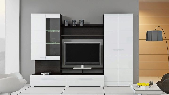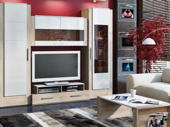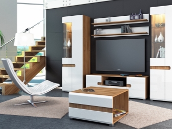 Такъв мебелен комплект е система от секции с отделение за телевизор, подредени в права линия. Слушалките от този тип могат да бъдат както симетрични, така и авангардни..