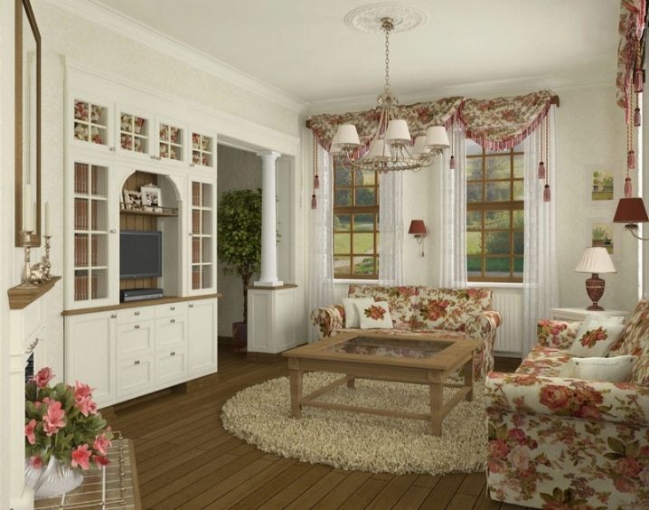 Това са всички нюанси на кафяво, бордо. Мебелите в стил Прованс изглеждат добре на фона на тапети с флорален принт.