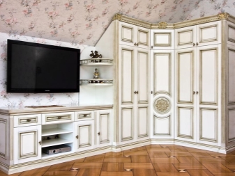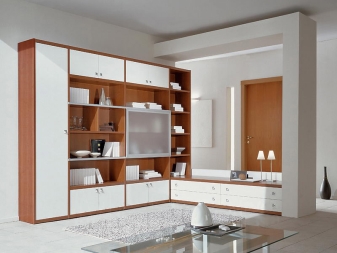 Този тип ви позволява да се възползвате максимално от пространството на кръстовището на две стени. Той е идеален за малки помещения с неправилно оформление. Такава стена ще спести място, като същевременно създаде оригинална и стилна среда. И ако поставите висок огледален шкаф в ъгъла, това визуално ще увеличи пространството на стаята..