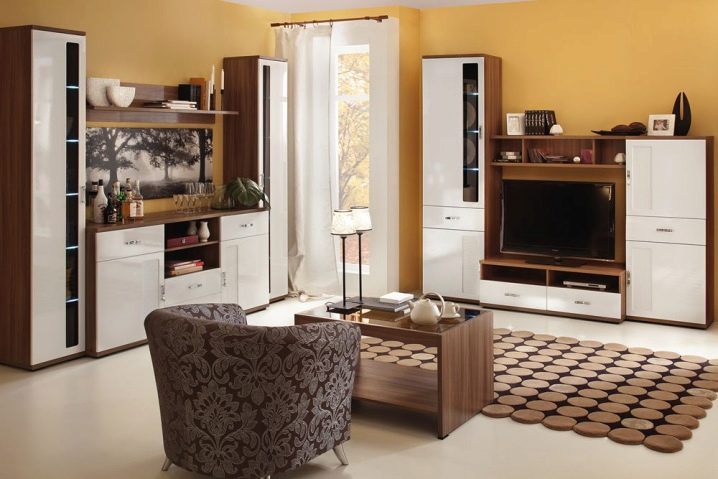 На първо място, трябва да вземете решение за стила. Външният вид на мебелите трябва да съответства на дизайна на стаята и общото настроение. Размерът и формата трябва да се избират въз основа на размерите на стаята. За просторен хол можете да изберете голям комплект от директен тип. За малка стая е подходящ ъглов вариант или мини-стена..
