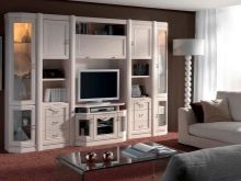 - Разнообразие от опции. В зависимост от вашите лични предпочитания, можете да закупите класическа или ултрамодерна стена. Във всеки дизайн бялата слушалка ще изглежда страхотно. Можете също така да изберете подходящия размер и конфигурация. Голям апартамент ще украси просторна зала, а мини-стена може да бъде поставена в спалнята.
