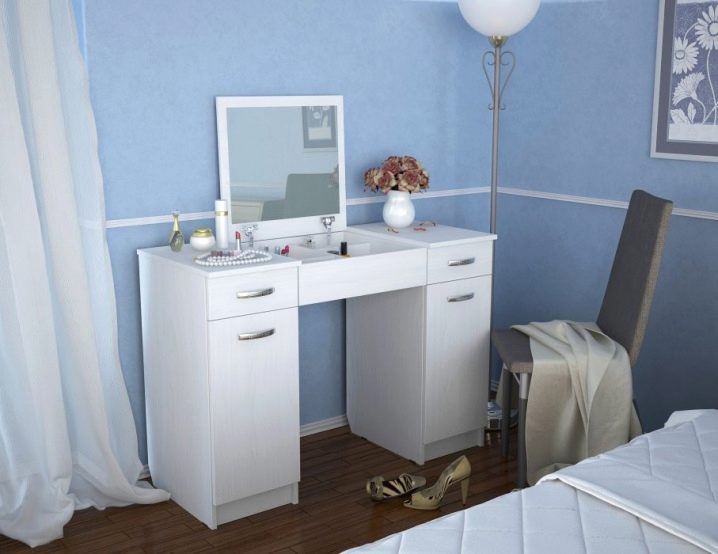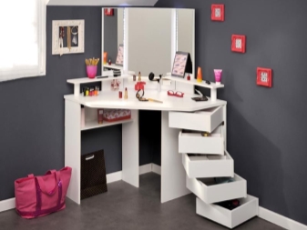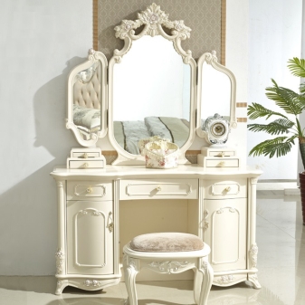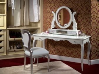 Първият тип заема по -малка площ, така че може да се инсталира дори в малка спалня. Поради особеностите на дизайна, кутиите им са доста големи и в тях лесно може да се побере всичко необходимо – от кремове до червило.