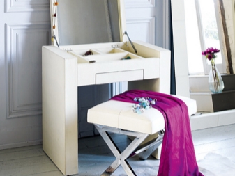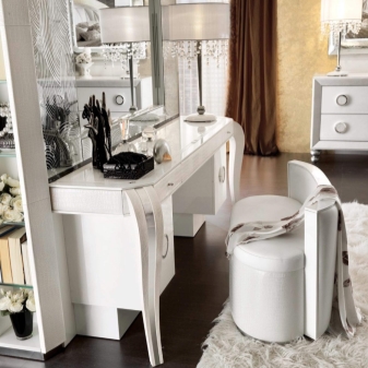 Бялата тоалетка е доста популярна мебел. Това е доста често срещано в спални, обзаведени в класически стил, но в съвременния интериор този продукт изглежда доста подходящ..
