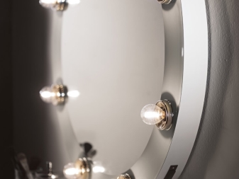 - Осветление. Ако спалнята ви е доста тъмна, тогава трябва да обърнете внимание на моделите с подсветка. Но в този случай, дори на етапа на ремонт, трябва да осигурите контакт за свързване на лампата към електричество. Не забравяйте, че светлината трябва да пада правилно върху лицето, в противен случай тя може да изкриви нюансите и тяхното възприятие ще бъде напълно различно, отколкото на улицата при естествена светлина, така че трябва да дадете предпочитание на модели, където лампите са разположени по целия периметър на огледало..