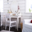 За малки спални тоалетка със сгъваемо огледало би била отличен вариант. Когато е затворена, това е обикновена маса, на която например можете да работите, а като сгънете масата отгоре, получавате пълна тоалетка с огледало.
