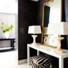 Така че тесните продукти под формата на конзола могат да имат дълбочина само 30 см. Това ще бъде достатъчно, за да поставите буркани с кремове или декоративна козметика на плота по време на процедурите пред огледало..