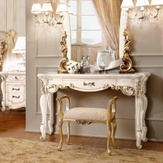Сега този артикул се използва за напълно различни цели. Той е доста модифициран и днес представлява набор от определени мебели, който ви позволява да събирате всички продукти за лична хигиена, декоративна козметика, парфюми, бижута и много други на едно място и да се привеждате в ред с тях всеки ден, преди да напуснете спалнята..