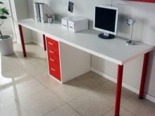 - Брусали. Достъпно бюро с достатъчна функционалност. Включва рафтове и затворени страни. Тя може да бъде права и ъглова, но след това струва малко повече. Изработени от ПДЧ.