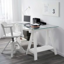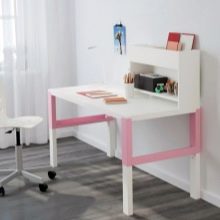 - В Ikea има и модели, които приличат на училищни бюра. Такива продукти имат ъглов дизайн или правоъгълна форма. Има и модели трансформатори, които ви позволяват да променяте позицията и височината на плота за по -удобна работа в седнало или изправено положение. Сгъваемите модели могат да се използват като детски маси или за възрастни.