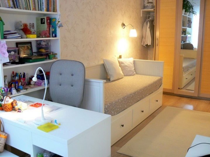 - С рафтове. Това е друг шведски продукт с повече функции. Пространството в долната част на продукта не е заето от нощно шкафче, но има рафтове над него. Тъй като повечето продукти на Ikea са модули, в магазините се продават допълнителни сменяеми артикули за такива структури;