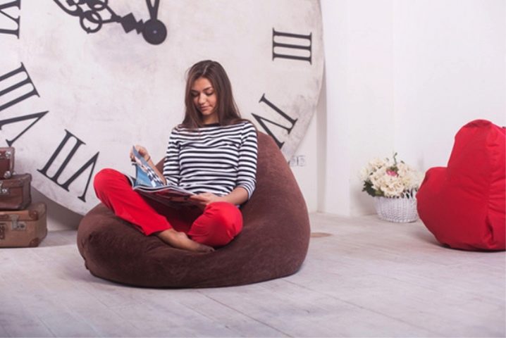 Най -популярният вариант е моделът круша. Столът е наречен така заради формата си, която прилича на този плод. За пълнене се използват малки топчета от пяна, които осигуряват комфорт и удобство по време на употреба.