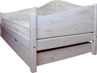 - Естетика. Борът има красив, топъл, естествен цвят, както и шарки, характерни за иглолистните дървета. За хората, които не се интересуват от естествеността, боровите легла са покрити с всичко: лак, боя, специално оцветяване, а също така допълнени с дърворезба, релеф или изгаряне.