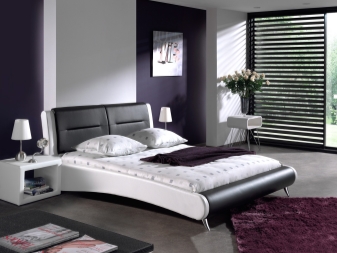 - Ако ще инсталирате не само черно легло, но и други мебели от този цвят, тогава декорацията на стената в стаята със сигурност трябва да е лека. Тъмните мебели са много красиво съчетани с бледосиньо и светло люлякови цветове..