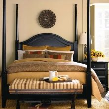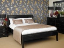 - Ако ще инсталирате не само черно легло, но и други мебели от този цвят, тогава декорацията на стената в стаята със сигурност трябва да е лека. Тъмните мебели са много красиво съчетани с бледосиньо и светло люлякови цветове..