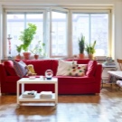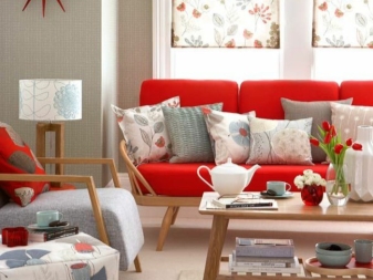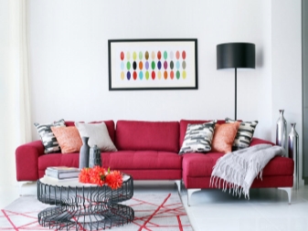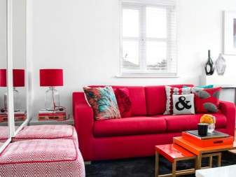 Когато планирате да поставите диван в стаята, трябва да помислите за други мебели: нощни шкафчета, гардероби, маси, домакински уреди – всички тези елементи разреждат агресията на червеното, създават спокойна и балансирана атмосфера.