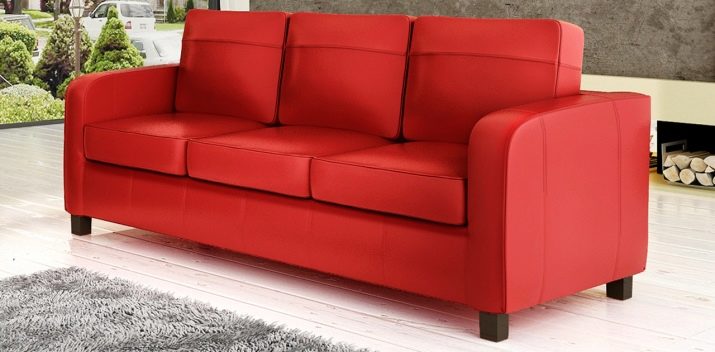 Меките мебели за почивка в червено с памучна тапицерия, естествена или изкуствена кожа ще бъдат връхната точка на всяка стая. Интензивното червено е идеално за съвременни модели мека мебел в стила на хай-тек, модерен, минимализъм. Място за спане с този цвят веднага се превръща в централен елемент, затова се поръчва доста често. Обикновено няма механизъм за трансформация в червените дивани, те се използват само за приемане на гости..